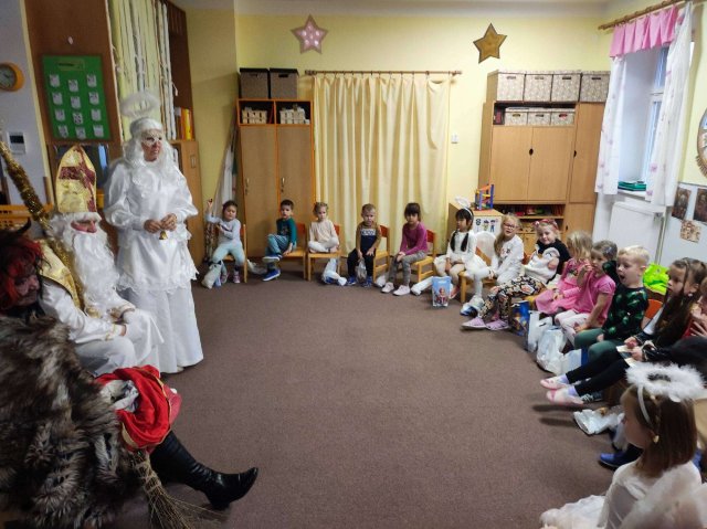 Následovalo povídání o svatém Mikuláši, čertech a andělech. Děti se seznamovaly s mikulášskými tradicemi prostřednictvím her, tvoření i hudebních činností a na konci týdne se těchto bytostí také dočkaly. Závěr měsíce patřil adventu a Vánocům. Společně jsme si ozdobili stromeček, vytvořili adventní věnec, pekli perníčky, zpívali koledy a připravovali se na besídku. Nechyběla ani radost z dárků, které dětem přinesl Ježíšek. Prosinec byl krásným a radostným zakončením roku. 🎄✨