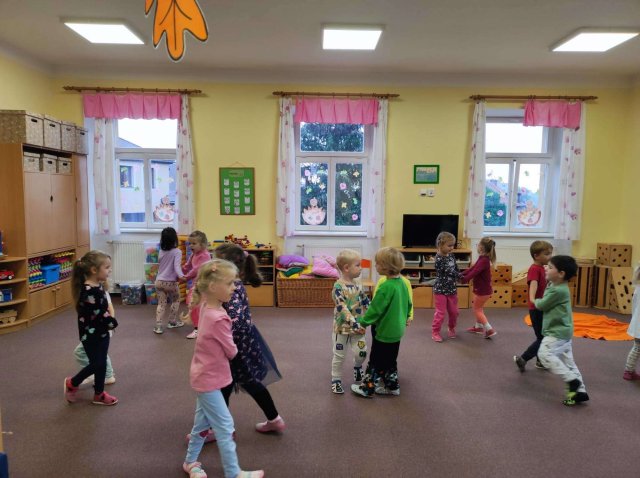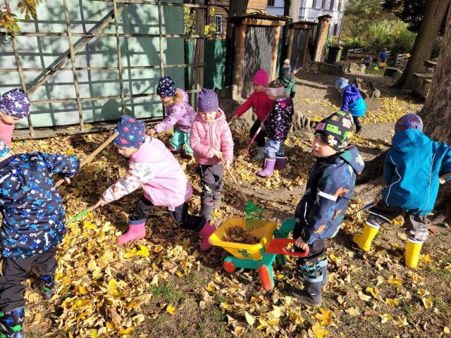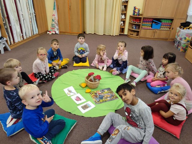 Učili jsme se poznávat houby, stromy. Zpívali jsme a tančili s veverkami. Hrabali spadané listí na zahrádce.