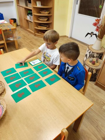 Přišel podzim a s ním byla spojena i témata tohoto měsíce. Seznamovali jsme se s plody lesa a zvířátky, které v lese žijí.