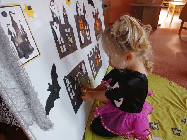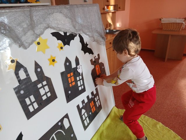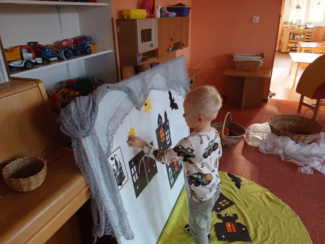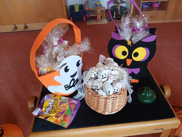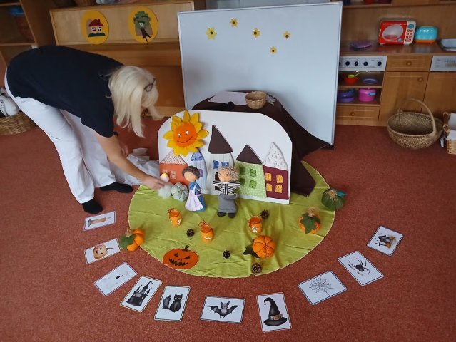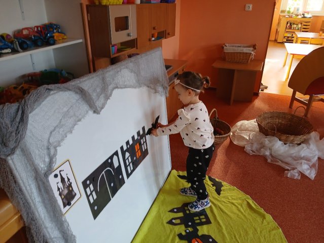 Ve třídě Kopretinka se děti seznamovaly s tradicemi spojenými s oslavou "Dušiček a Halloweenu". Motivační příběh s maňásky „O malé dušičce“ děti velice