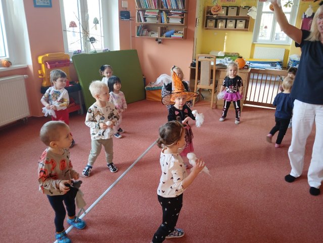 zaujal. S duchy cvičily, zpívaly, zdolávaly halloweenskou stezku a nadšeně si užívaly halloweenské řádění a tančení.