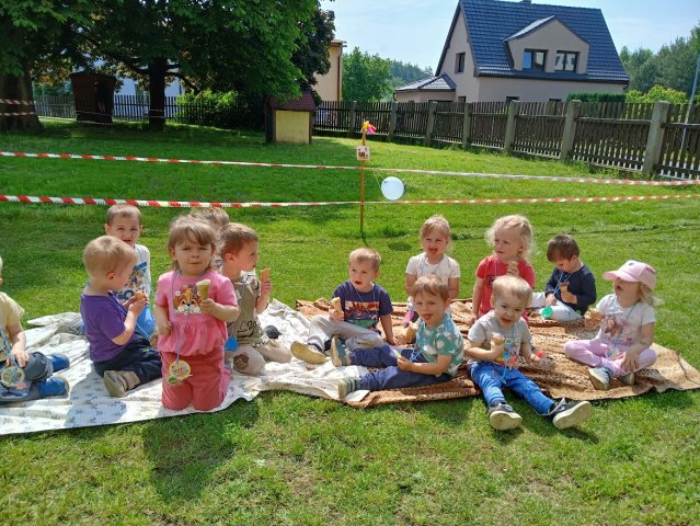na cestě za pokladem děti zvládly, brzy našly, a rozdaly si vytoužené překvapení. Tím ovšem oslava ještě neskončila. Na naší zahrádce vyrostla nová Cukrárna, kde všem rozdávali výbornou zmrzlinu v kornoutku.