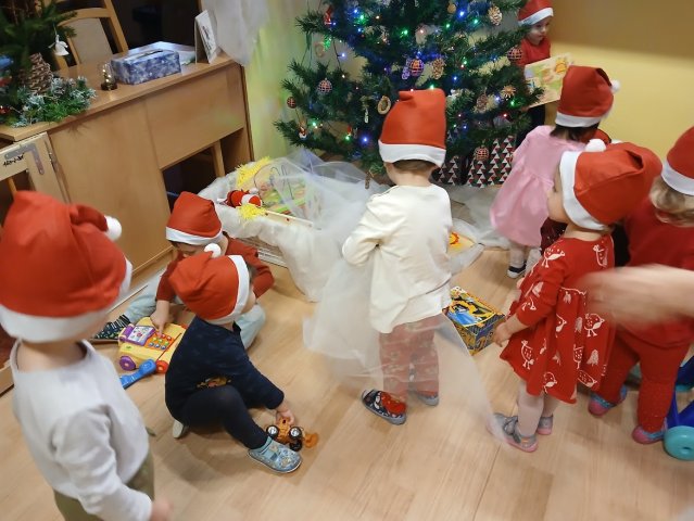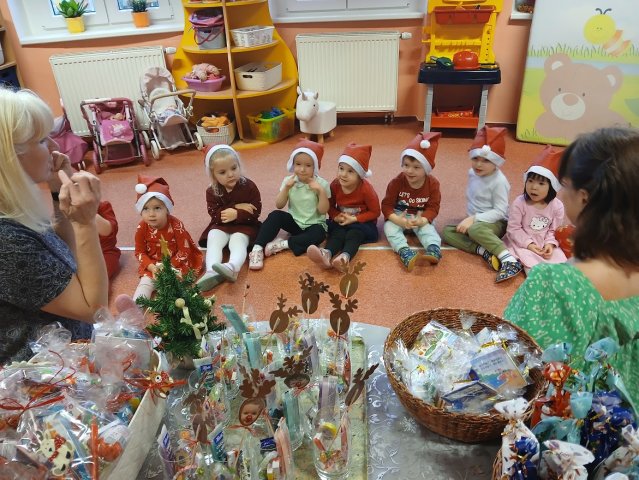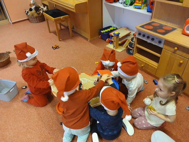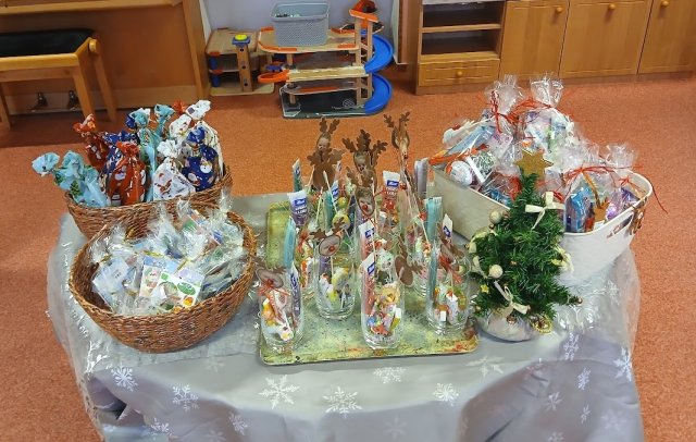 Dnes jsme od rána tušili, že nás čeká radostný den. Tety nám vyprávěly, jak slyšely cinkání zvonečku a to by mohlo znamenat, že okolo školky létal Ježíšek. Nikde, ale