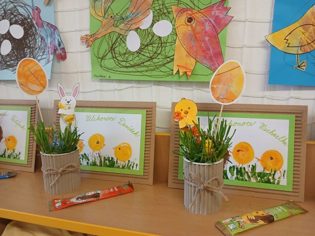 začátek jara a k Velikonocům neodmyslitelně patří. Společně jsme tiskali, kreslili, tvořili přáníčka, kuřátka i slepičky….