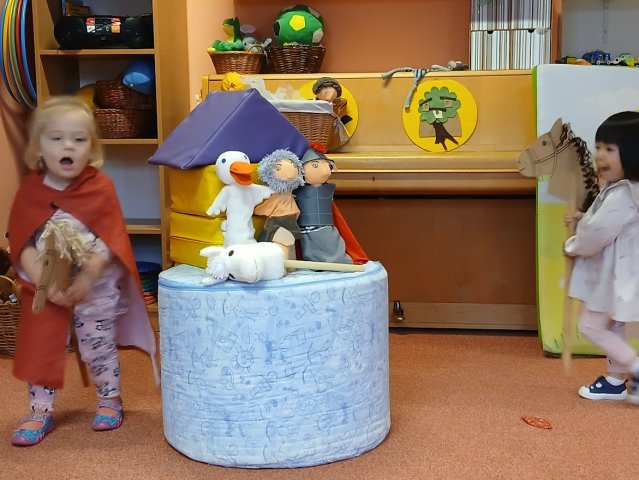 Příběh "O Svatém Martinovi" děti nejprve zhlédly bez zvuku za vyprávění paní učitelky v českém jazyce. Poté v originále. Můžete zhlédnout zde:
