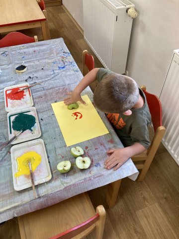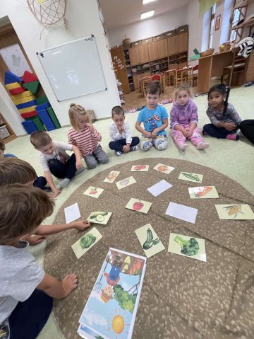 V průběhu měsíce jsme se věnovali také tématům ovoce, zeleniny a babího léta. Děti třídily, poznávaly a ochutnávaly různé druhy plodů, učily se, odkud pocházejí a k čemu jsou pro nás důležité. Užily si také pozorování podzimní přírody, slunečných dnů i barevných proměn venku.
