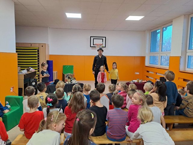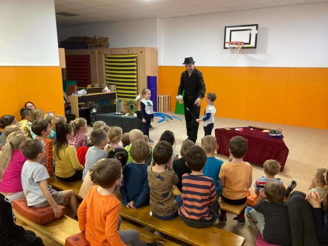 Dnes za námi do školky přijelo divadlo kouzel. Vystoupení se dětem moc líbilo.