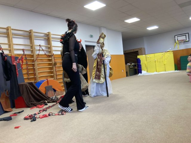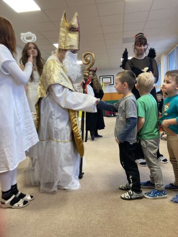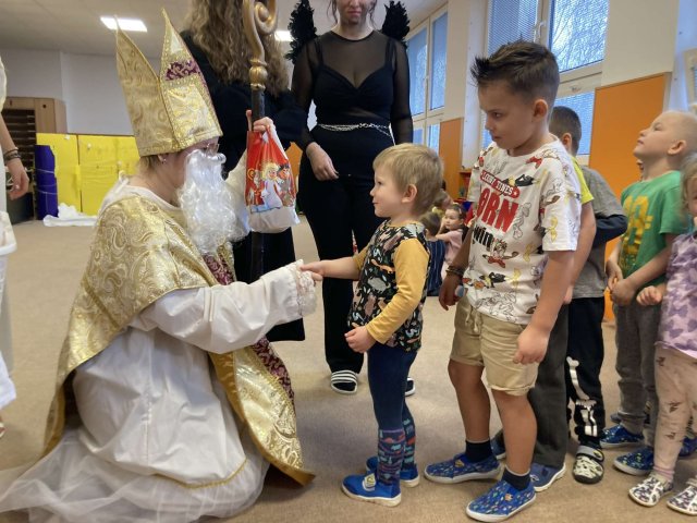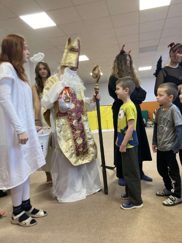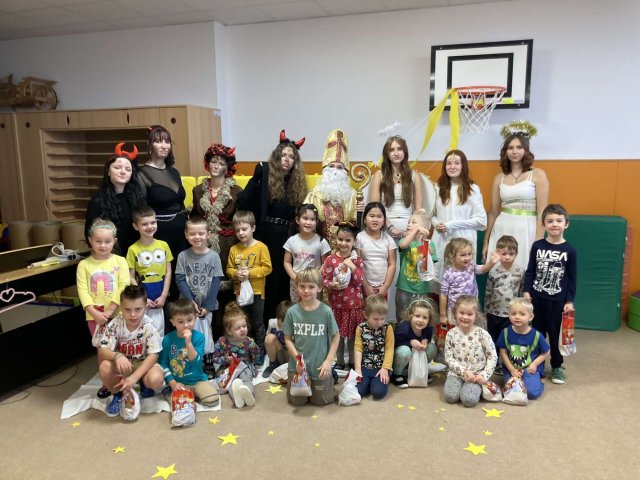 Dnes za námi dorazila vzácná návštěva, Mikuláš s anděly a čertíky. Společně jsme jim zazpívali a slíbili, že budeme hodní. Za odměnu jsme dostali balíček s dobrotami.