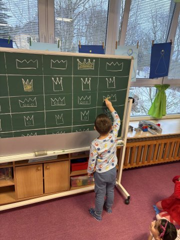 Týden nám začal svátkem Tří králů, proto jsme si o nich přečetli příběh. Zjistili jsme kam putovali, jak se jmenovali a také jaké dary nesli Ježíškovi. Naučili jsme se o nich písničku, porovnávali jejich koruny nebo si vyzkoušeli jak těžké pro ně bylo překonat cestu s korunou na hlavě👑
